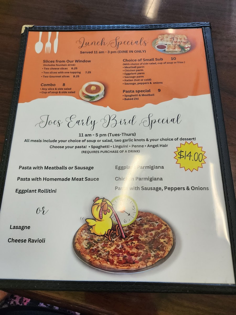 Slice to Share: Perfect for quick lunches, Brooklyn Joe’s offers delicious pizza by the slice.